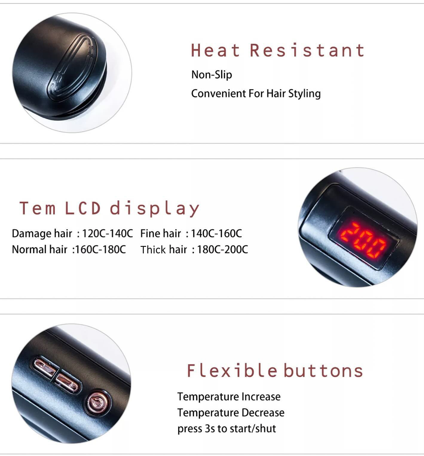This versatile hair curler features a 4-in-1 design with adjustable wave heights, allowing you to create various styles. The ceramic tourmaline barrel and PTC heater provide even heat distribution and minimize hair damage. With its LCD temperature display, you can easily adjust the heat settings between 120-200°C. The 360° swivel power cord make it perfect for both personal and professional use.